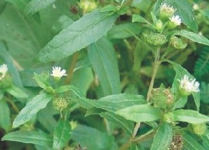 【别名】旱莲草、墨草,鳢肠 , 取材:全草药用, 【气味】:(草)甘、酸、平、无毒。